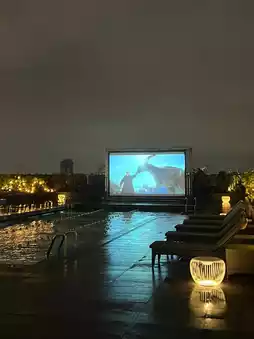 Ask the front desk for the "Starlit Cinema Calendar" upon check-in and reserve the "golden lounge chair area" (best view on the left side of the pool).