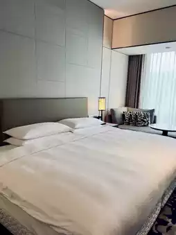 Nestled beside the Shilin Official Residence, the Renaissance Taipei Shihlin Hotel is a rare urban oasis in Taipei. Upon entering the room, large glass windows invite the lush greenery outside, offering a distant view of Yuanshan and the gentle silhouette of the Tamsui River, instantly broadening one's state of mind. The interior design blends Eastern elements with modern lines, exuding a refined elegance in its understated style.