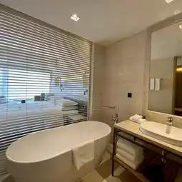 In terms of accommodation experience, the hotel's guest rooms are simple and stylish in design, and the rooms are fully equipped. The spacious and comfortable rooms are equipped with king-size double beds, allowing you to enjoy sufficient sleeping space. The bathroom is separated into dry and wet areas, and has a bathtub, so you can soak and relax after the journey.