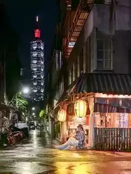 The super popular izakaya photo spot on Instagram 🔥, with Taipei 101 in the background, nestled between narrow alleys.