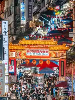 From the observation deck of the parking lot diagonally opposite the night market, you can capture the night market's archway and also Taipei 101 in the distance.