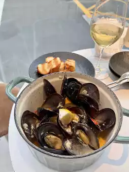🦪She'"ll is named "Shell". The dishes are all kinds of shellfish delicacies. It wants to provide a luxurious and authentic seafood experience that combines local Taiwanese ingredients! ! The first time I came, of course, I ordered mussel pot and oyster set meal, and a glass of white wine (very ordinary😏You get what you pay for), but it’s finally a restaurant that’s a little different!
