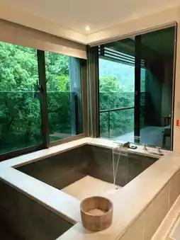 The most delightful surprise is the room design! Each room comes with a private hot spring bath featuring natural white sulfur spring water, as smooth and velvety as silk. After soaking, your skin feels incredibly soft, rivaling even the best Japanese hot springs! Open the window to reveal layers of verdant mountains, and while soaking in the bath, enjoy the misty mountain views with a cup of hot tea—pure bliss 💦✨. At night, the outdoor hot spring is a must-visit. Soaking under the starry sky, surrounded by the steam rising from the spring water, creates an atmosphere that feels like a fairyland.