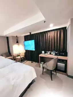 🧳Room: Book a room with three beds, stay for three people. The room is not narrow. The room is quite spacious. It is not cramped when you are together. The bed is comfortable. There is a desk to work and a desk to sit on. There is 1 bottle of drinking water per person in the room, along with tea and coffee.