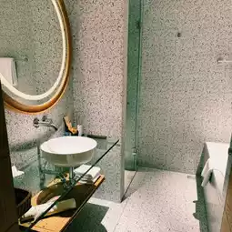 The hotel lobby is relatively small, and during peak hours, it can feel quite crowded. Although I booked a king-size bed room, the room itself was rather small, and fitting three suitcases inside made it feel cramped. The hotel provides some complimentary snacks in the room, and after multiple stays, the staff even prepared additional free beverages in advance for me. However, the hotel does not provide bottled water; guests need to go to a water station on each floor to refill their water, which is quite a unique feature. The bathroom and toilet are separate, with the bathroom featuring a bathtub and a dry-wet separated shower area. Soaking in the tub after returning to the room each day was an excellent experience.