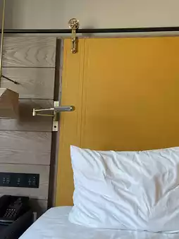 The room is dominated by warm gray tones, with retro leather case-shaped wardrobes and film-like chandeliers, detail control directly scream! The most courteous is the bedside with a negative-themed night light, at night turn on the light seconds into a miniature film exhibition ~ The bathroom adopts a semi-open design, marble countertop with matte glass, light through the grille, photography atmosphere pulled full📸