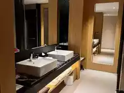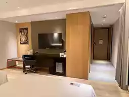 The room facilities were impressively modern, featuring a sparkling clean bathroom with double sinks, a bathtub, and a bidet toilet. They thoughtfully provided four bottles of water and high-quality disposable cups. The bed was perfectly balanced in firmness, and the dual USB outlets by the bedside were a major plus! The lighting was bright and fully adjustable, adding a sense of security.