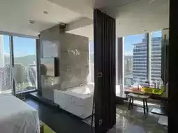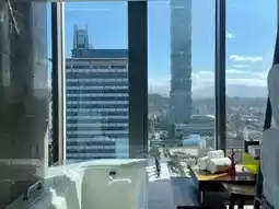 Staying at the Fantastic Suite in W Taipei truly defines the word 'dreamy'! The bathtub is perfectly positioned to offer a stunning view of Taipei 101, allowing you to soak in warm water while enjoying the night scenery—just like a scene from a movie. The room is designed with a chic black and gold theme, featuring a rotating TV wall, floor-to-ceiling windows, and a bar area that are all Instagram-worthy spots. Even the bathroom mirror is equipped with LED light effects!