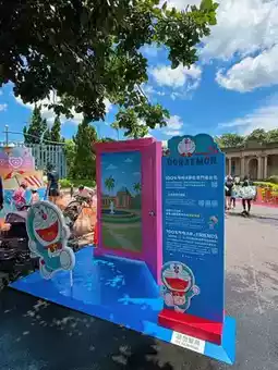 Found a pink Anywhere Door under the shade of the tree. When it is opened, it turns out to be a cartoon version of the park's fountain! It is a highlight of this joint event with "100% Doraemon & FRIENDS". Doraemon fans must take photos and check in to make memories cute~