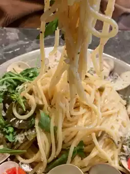 🍝 Medium roll squid pasta: slightly spicy garlic flavor, super appetizing! The medium roll is chewy and the clams are sweet, a must-order for those who dare to eat spicy food~
