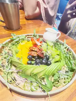 • A refreshing mix of greens and seasonal fruits, tossed in creamy avocado dressing with a touch of herbed lemon yogurt.