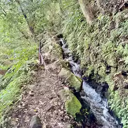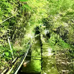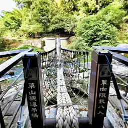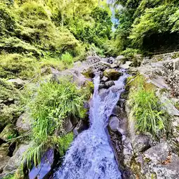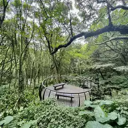 Take Bus 129 from Beitou MRT Station and get off at Top Lake Station. Walk towards Bamboo Lake, and you'll see the "Grass Mountain Waterfall Suspension Bridge" spanning over Huangxi Creek. This suspension bridge connects the Monkey Kan Ancient Trail and Shiba Irrigation Trail, enhancing the richness of both trails and offering visitors an exhilarating experience as if walking above the Grass Mountain Waterfall.