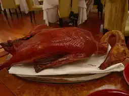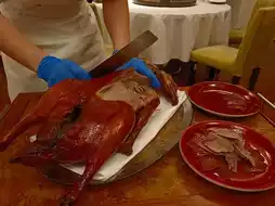 Beautiful uses a 4-pound white romaine goose. The skin is sliced tableside and then rolled into pancakes (a whole goose can be rolled into 20 rolls, which can be prepared by the restaurant or you can wrap them yourself).