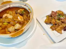 The dishes that we were particularly satisfied with this time included roast duck, fried chicken, slow-cooked braised beef cheek, soup, black bean sauce dragon gall stone squid, oyster sauce ox hoof crab, fried clams with sweet potatoes, mapo shrimp and panda tofu pot, XO sauce osmanthus radish cake, barbecued pork crisps and oyster sauce magnolia beef, etc.