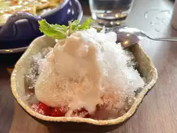 In terms of flavor, dishes with spiciness had a mild kick, slightly spicier than what I usually expect from Thai cuisine. The Thai-style rice noodles and green curry chicken were decent—not bad, but not particularly outstanding either. The golden shrimp cakes were my favorite; they were flavorful and the shrimp was tender. The stir-fried cabbage with shrimp paste was unique, with a crispy and sweet texture, a fragrant shrimp paste aroma, and a hint of spiciness. "Momo Cha Cha" wasn't quite my usual taste, but it was packed with ingredients, resembling a multi-flavored shaved ice dessert.
