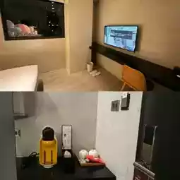 The decoration of the room is designed in a simple and sleek style, the space is quite spacious, even if you open two suitcases at the same time is no problem; the bathroom has a dry and wet separation, the shower has a seat to sit down and slowly shower, and there is a toilet; the room also has a small refrigerator, minibar and electric kettle 👍🏿