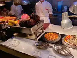 The Chinese section features roast meats, various stir-fries, and a freshly cooked section. The braised ginseng is something you won't find at other buffets, showcasing the chefs' expert skill.