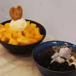 We ordered their signature Mango Shaved Ice and the Taro Mixed Douhua (tofu pudding).
