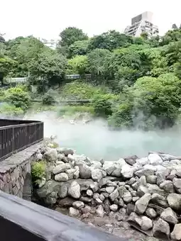 For nature lovers looking for a hot spring that's easily accessible in Taipei, Thermal Valley is a must-see. This hot spring in Beitou District, Taiwan, reaches temperatures of 80-100 degrees Celsius. The water is a vibrant blue-green, rich in radium. Standing in the hot spring area, you can feel the steam gushing out. It's a perfect place to relax amidst the warm steam. However, you can't bathe in this pool, but there are hotels in the area offering hot spring baths.