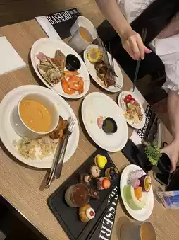 The highlight is the buffet, which includes Western, Chinese, Japanese, seafood, and a full range of desserts. There's also a Thai section, which is amazing! There's a huge selection of desserts and a variety of dishes. You have to try them! 🥰 We recommend making a reservation on the website before coming. The staff are very attentive and provide excellent service. I'm impressed! 💗