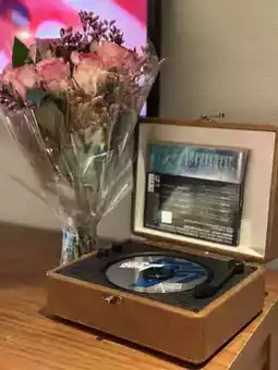 There's also a vintage record player on the table with a selection of Mandarin albums.