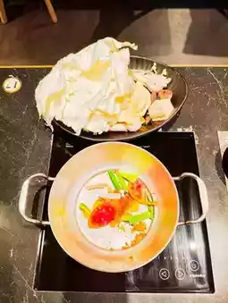Banban Stone Hotpot, located at the end of Ningxia Night Market, has been open for less than two years. Its overall style is somewhat similar to the Mong Kok Stone Hotpots in Sanchong and Ximending, but the restaurant doesn't charge a 10% service charge, which is quite nice and generous. It's a great place for my husband and me to grab a late-night snack. 🤩 You can choose between a stone hotpot, stir-fry hotpot, or a regular shabu-shabu hotpot. They say their shacha sauce is their own unique recipe, and it tastes completely different from chain restaurants. ❗ The restaurant is clean and bright. They offer unsweetened green tea and winter melon lemon tea, which I often mix with my drinks. 🤣🤣🤣 They've also recently added all-you-can-eat ice cream for a minimum of NT$290 per pot. Meat lovers can add an extra NT$100 for a plate of meat.