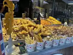 Finally, we arrived at Jiufen! Walking up the narrow alleys adorned with red lanterns felt like stepping into a movie scene. It's also known as the inspiration for the animated film "Spirited Away." The streets were filled with delicious treats like peanut ice cream, fish ball soup, and bubble tea, making it fun to snack while exploring every corner.