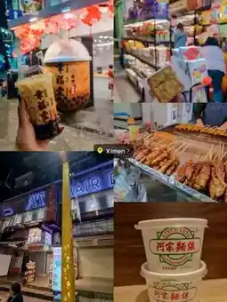 - We took the train back to Ximen to find something to eat and buy souvenirs. The shop with the yellow pillars was very kind and she was very good at letting us try some food. 😂