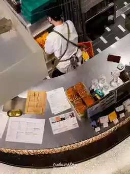 The shop has two floors. Luckily, there are sofa seats downstairs, as well as wooden tables and chairs inside, or a coffee bar-style seating area. We ordered several fusion-style coffees, many of which looked worth trying.