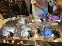 The buffet offers an impressive variety of dishes, with seafood being particularly outstanding. The assorted sashimi is fresh and delicate, the scallops are sweet and plump, and the grilled oysters and snails are full of flavor. The large shrimp and fried shrimp are must-try favorites. Notably, the king crab soup and wine-steamed clams are exceptional, with their savory broth leaving a lasting impression. For meat lovers, the ribeye steak is perfectly seared on the outside and tender inside, served in generous portions and complemented by various dishes for a satisfying experience. Don't miss the dessert section, especially the Gelato, which is smooth and refreshing, providing a perfect ending to the meal.
