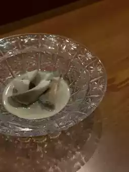 บรรยากาศร้านหรูมาก แต่ไม่อึดอัด ตกแต่งสไตล์ญี่ปุ่นร่วมสมัย มีทั้งโซนซูชิบาร์ เทปปันยากิ เทมปุระ แล้วก็ห้องส่วนตัวสำหรับมากันหลายคน เราเลือกนั่งโต๊ะปกติแต่ก็ยังรู้สึกได้ความเป็นส่วนตัวดี