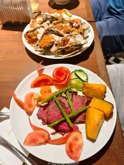 The Beef Wellington was quite disappointing. It felt like it wasn't made from fillet, so it was a struggle to cut and chew, and it had a distinctly fishy smell. 🥹