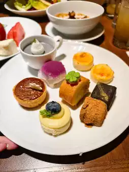 Desserts also feature many Japanese classics, such as brown sugar warabi mochi, sesame cheese, sesame fiorentino, seared Japanese cheese, and red bean soup.