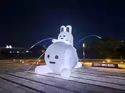 Highlights: Three balloon-like bunnies, 4.7m, 3.5m, and 4.2m tall, soft and cloud-like in appearance, sparkling even more spectacularly when illuminated at night.