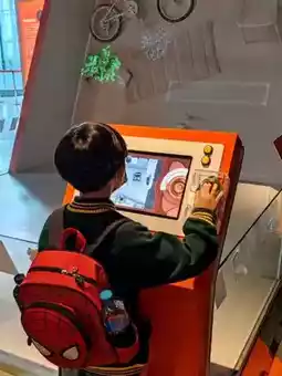 SkyCycle: One of the museum's most popular attractions, SkyCycle allows visitors to ride a bicycle on a cable 20 meters above the ground, spanning the atrium. Weights installed at the bottom of the bicycle give it an extremely low center of gravity, ensuring stable balance. This challenge challenges visitors' courage and practically applies the scientific principle of the center of gravity of a tumbler.