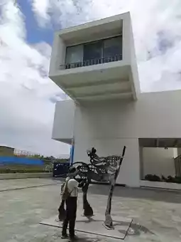 The knight sculpture outside the Taipei Fine Arts Museum is a part of an interactive art installation. Unfortunately, I couldn't capture the Hercules transport aircraft behind it.