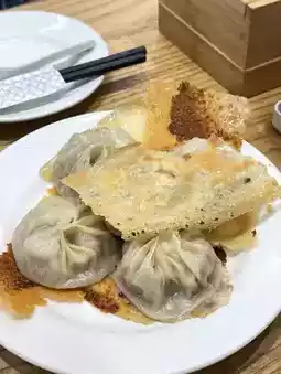 These xiao long bao have thin dough, juicy broth, and a crispy base. Absolutely delicious! We highly recommend ordering them; every table will have one! ✨