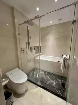 My room? Quiet, stylish, super clean, and packed with comfy vibes. The bed felt like a cloud, and the bathroom had a big bathtub perfect for those post-exploring chill sessions. Obsessed with the smart touches too—electric curtains and a Japanese toilet made me feel totally bougie 😂. Big plus: the soundproofing game is strong, so I got a solid snooze every night with zero street noise.