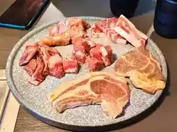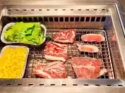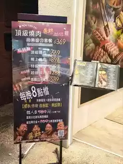 Before even entering Xiangye Guo Huo BBQ, located on the second floor, the entrance displays the all-you-can-eat options at various price points. A wall sign reads, "Delicious and Refreshing BBQ Delights." This time, I chose the "Supreme BBQ" for 859 per person. The meal takes 120 minutes, and the ordering time is 90 minutes. The restaurant prioritizes not wasting ingredients, so they'll ask if you want to continue dining when the time is up, otherwise the table will be cleared. The restaurant is spacious and has a third floor (where the restrooms are located). The seating is spaced well apart, but the lighting is more atmospheric and not overly bright.