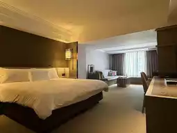The rooms are spacious and beautifully appointed, offering sweeping city views that sparkle at night. Guests can indulge in the rooftop pool, unwind at the serene spa, or explore the curated selection of boutiques in Regent Galleria right below. Dining here is a highlight — from exquisite dim sum at Silks House to the indulgent buffet at Brasserie, every meal feels like a celebration of flavor and finesse.