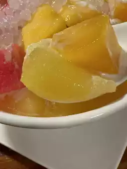 This fresh fruit platter makes the bottom look like ice, but it's actually douhua.
