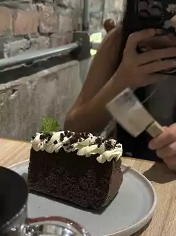 The highlight is the chocolate chiffon cake, which comes with a mini kitchen knife for cutting—so relaxing and adorable! 🤣