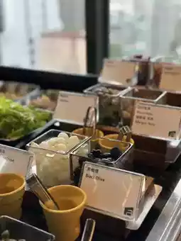While the menu isn't large, it includes hot dishes, fruit, salads, coffee, juice, and more. For an additional NT$99, you can get all-you-can-drink beer, red wine, and white wine. Start drinking early in the morning. It's pure vacation ambiance! The Chinese breakfast also features a rare #peeledchili pepper dish.