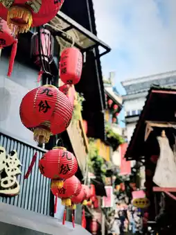 The sloping streets lined with red lanterns have a nostalgic atmosphere, making for a truly Taiwanese experience.