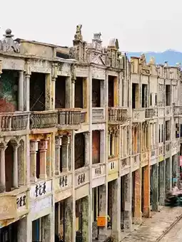 Upon arriving in Taishan, I couldn't wait to visit the Mei Family Compound. Built in 1931, this complex consists of 108 arcade-style buildings, arranged in a magnificent manner. Stepping inside, it felt like traveling back in time. The blend of Chinese and Western architectural styles is striking, with European carvings and Chinese glazed tiles complementing each other. Each building tells the story of the overseas Chinese's struggles and successes. Strolling along the stone-paved roads and touching the mottled walls, the prosperous scenes of the past seemed to unfold before my eyes. The Mei Family Compound gained fame as a filming location for movies and TV series like "Let the Bullets Fly" and "The Knockout." Standing in these familiar scenes, I felt like I had stepped into the screen.