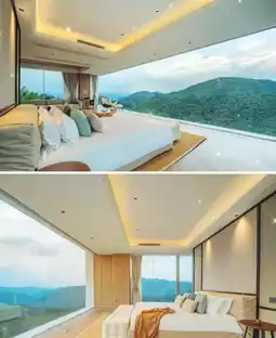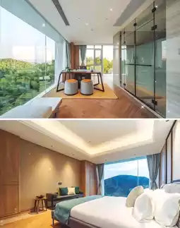 This spacious property features only 8 uniquely designed rooms, each offering distinct views. Ranging from 40 to 100 square meters, the rooms boast floor-to-ceiling windows, with the largest being a single 13m×3m glass panel that seamlessly blends the outdoors in. Wake up to automated curtains revealing misty bamboo forests and distant mountains, as if stepping into a painting.
