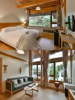 💯 Top Recommendation: Highly recommend their countryside-themed suite! The room is spacious and bright, decorated with warmth and romance. Opening the window, you'll be greeted by fresh countryside air and vast greenery, refreshing your mind and soul🌱. The furniture is made of natural wood, paired with soft bedding that makes you feel like you're lying on clouds—supremely comfortable🛌. The private bathroom is clean and tidy, equipped with high-end facilities, from massage showerheads to exquisite toiletries, all showcasing quality and style🧴.