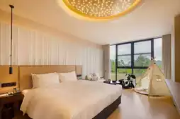We booked a family-themed room, which was spacious and warmly decorated. The kids were ecstatic upon entering, especially with the large bunk bed adorned with cute plush toys and a small tent they immediately crawled into to play. The room was well-equipped, with large floor-to-ceiling windows offering stunning views of the surrounding nature. The balcony featured a sofa and a small table, perfect for relaxing and enjoying the breeze. The bathroom even provided children’s toiletries, showcasing the hotel’s attention to detail and care💕.
