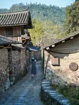 we encountered an ancient village in southern Zhejiang full of wooden houses, stone houses, and rammed earth houses,