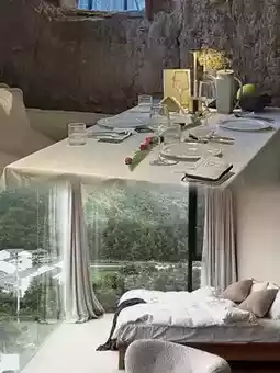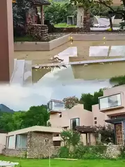 The courtyard is designed around a water system, evoking the ambiance of a dry landscape garden💧. There is a suspended infinity pool overlooking the valley🏞️; the Shouzhuo Academy houses 8,000 books📚 and regularly hosts artist residency exhibitions; additionally, there is an antique-style tea room (serving local Taishun tea)🍵, a wild bar (perfect for evening drinks)🍷, and a large lawn (ideal for camping and outdoor fun), providing spaces for guests to relax and entertain.